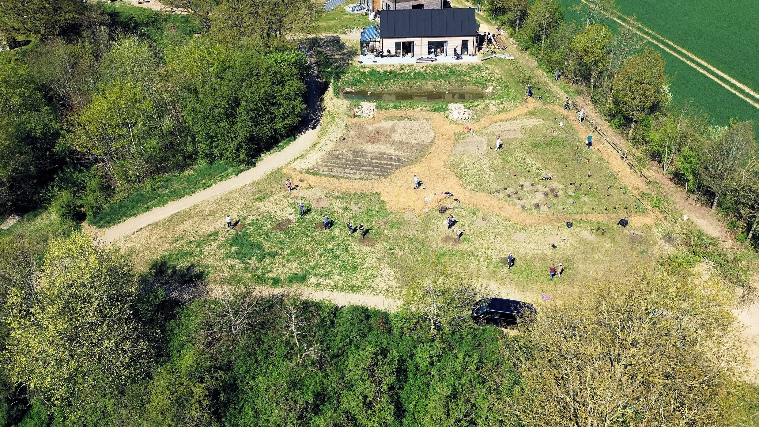 Her bor vi 25 familier i nybyggede træhuse.